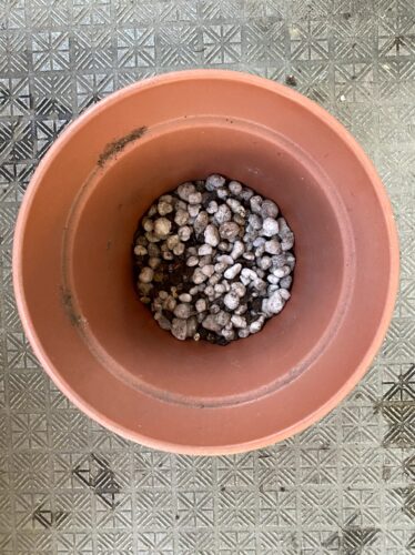 まず鉢の底に軽石を1〜2cmほど敷きました。これで水はけが良くなるらしいです。